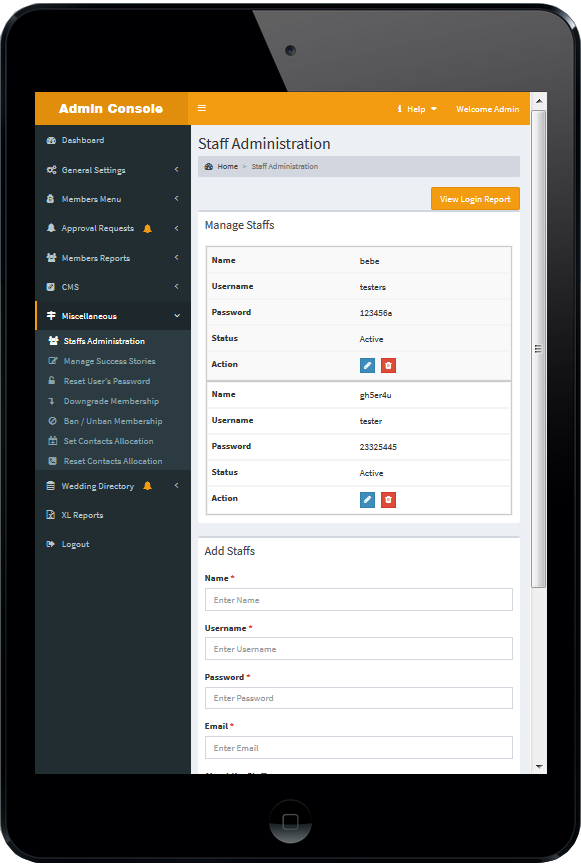 Staffs Administration
